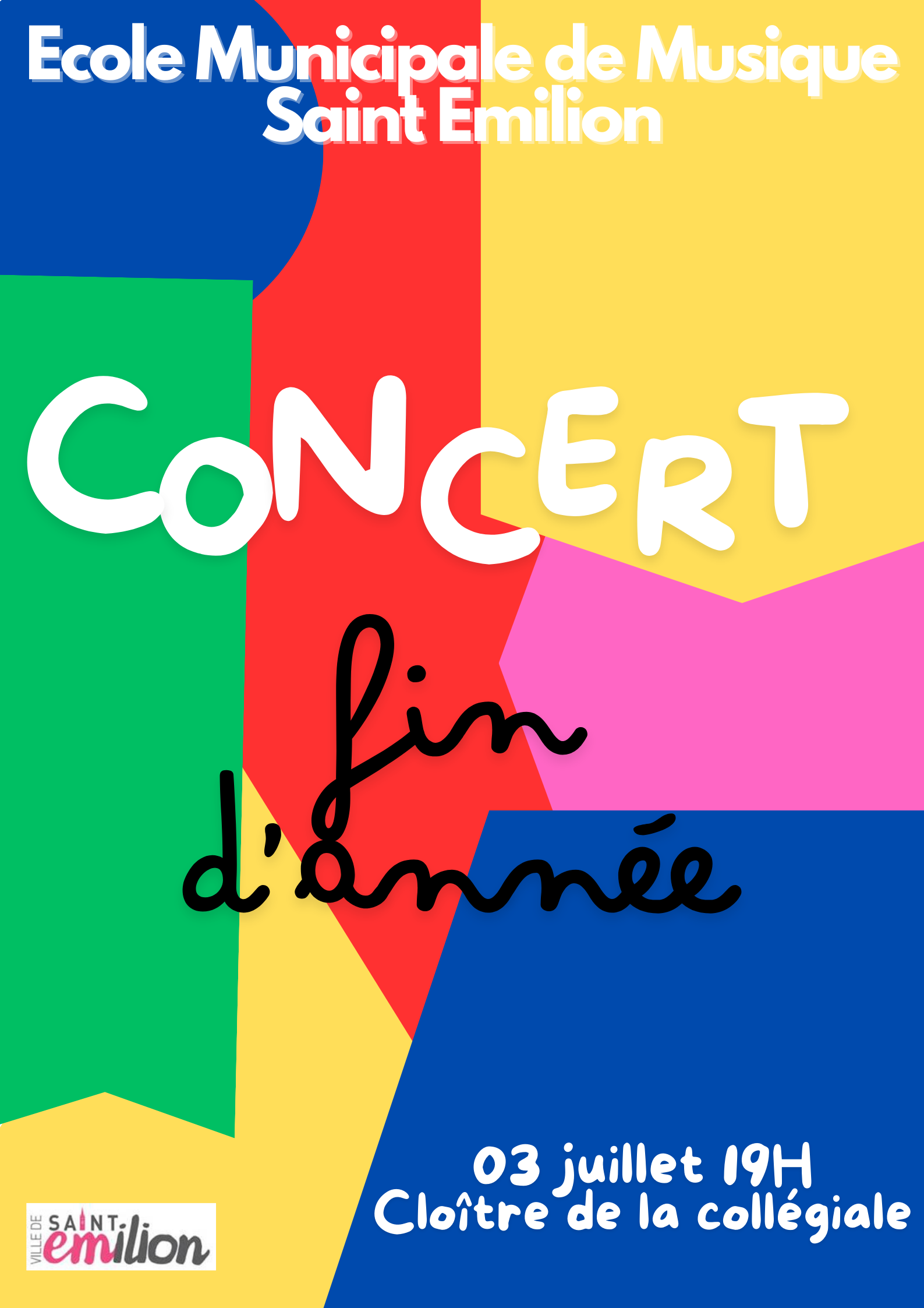 L'école de musique municipale de Saint-Emilion vous livre son concert de fin d'année mercredi 3 juillet dans le cloître de l'église Collégiale à 19h00!